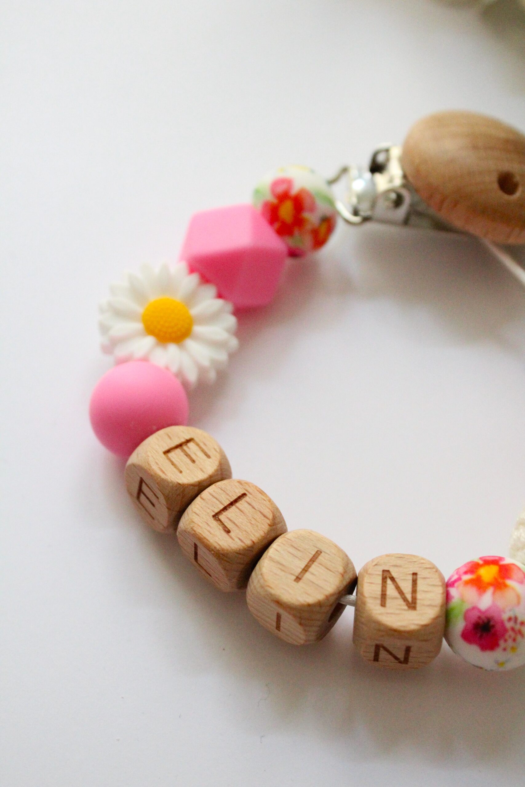Met dit leuke speenkoord met (of zonder) naam blijft de speen van je baby altijd dichtbij.